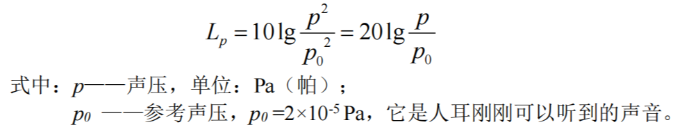 其实I为声强;I0为参考声强,一般取I0=10-12 W/m2,这是相应参考声压级P0=2×10-5 Pa 时的声强。一般情况下可以认为声压级等于声强级。